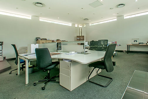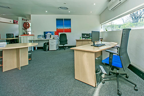 The office space comprises a reception area and seating at the entrance. The ground floor comprises a large open-plan office, two cellular offices, a kitchenette, and male and female toilets. The first floor comprises a cellular office, two open plan office areas and a boardroom.